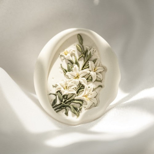 Each stamp is intricately sculpted with soft floral textures and elegant depth, bringing a timeless, romantic touch to every impression.