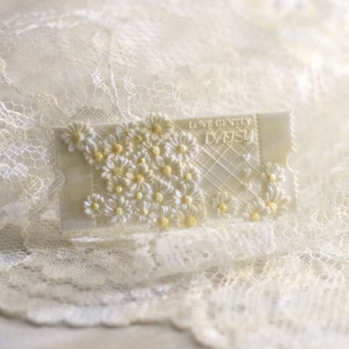 Step into a world of vintage romance with The Botanist’s Admission, an exquisite ticket-shaped wax seal featuring a 3D-sculpted daisy cluster spilling over a delicate lattice backdrop, complete with scalloped edges and the laser-etched sentiment to "Love Gently."