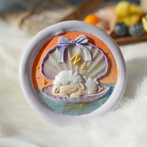 Bring a sense of peace and whimsical elegance to your correspondence withThe Lullaby Shell Wax Seal Stamp. This exquisitely detailed 3D wax seal features a soft, fluffy lamb nestled deeply within a classic scalloped seashell, drifting off into a peaceful slumber.