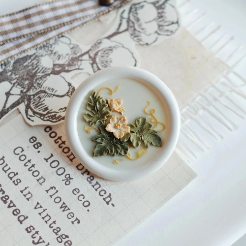 Discover the exquisite Botanical Whispers Collection, a set of five wax seal stamps and coordinating rubber stamp designed to bring antique elegance to your modern correspondence and crafting.
