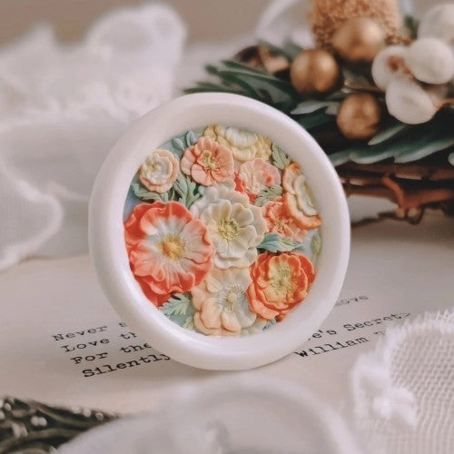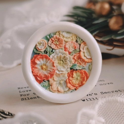 This is not a traditional flat seal, but a highly specialized, laser-engraved seal head featuring a breathtaking deep-relief floral bouquet. The design showcases a dense, overflowing cluster of Poppy flowers, alongside smaller buds and lush foliage. The intricate depth creates a stunning, sculptural effect, making each wax impression resemble a miniature, hand-carved cameo or medallion.