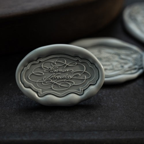 This delightful wax seal features the heartfelt message "Have a Nice Day" rendered in beautiful, flowing calligraphy. The phrase is artfully encased within an elegant, cloud-like cartouche, adorned with graceful swirls and delicate flourishes. The design strikes a perfect balance between sophisticated artistry and a sincere, friendly sentiment. Crafted with a specialized matte-finish technique, the resulting wax impression has a soft, refined texture, allowing the intricate script and decorative frame to stand out beautifully. It’s the ideal accent for casual correspondence, thank-you notes, gift wrapping, or any occasion where a touch of kindness and elegance is desired.
